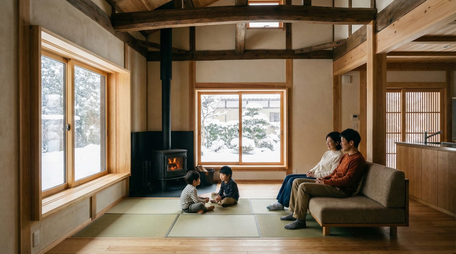 雪国の古い家屋は、太い梁や立派な柱など、現代の建物にはない魅力的な空間を持っています。